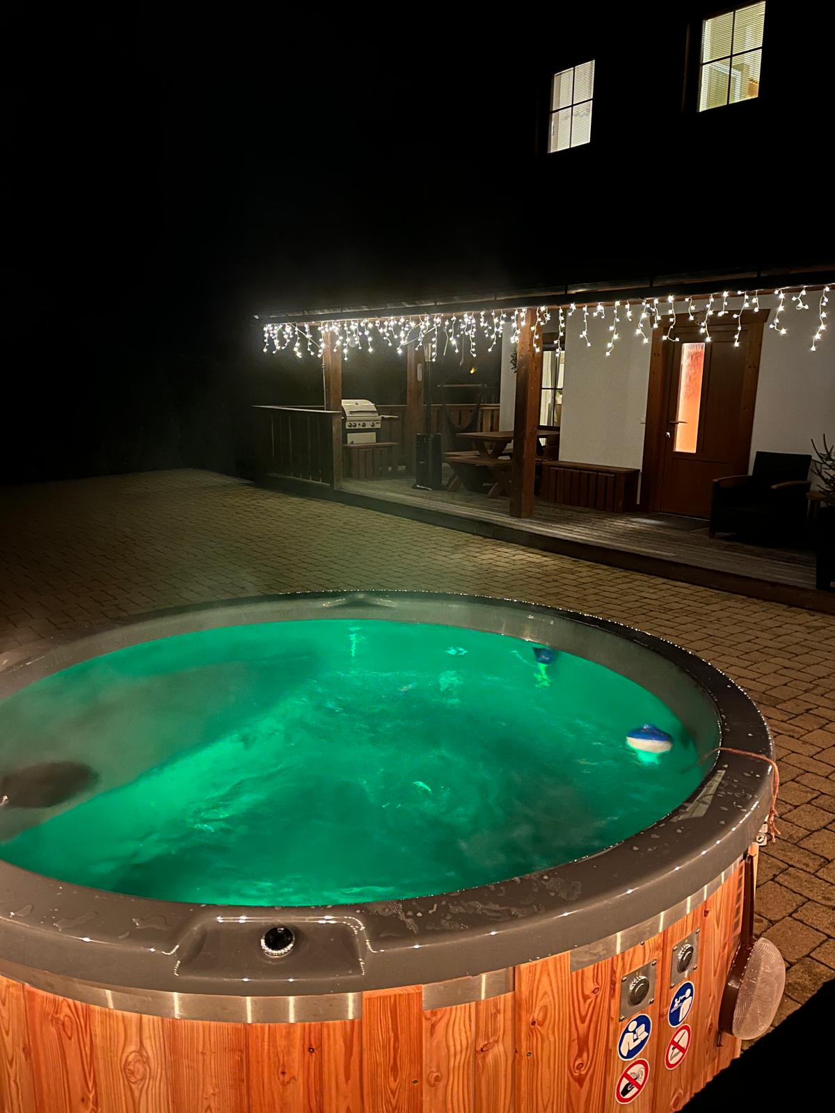 Koupelna se sprchovým koutem a vanou, do které se vejde i více dětí najednou.