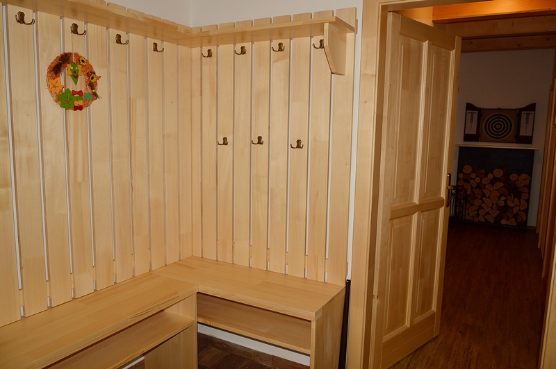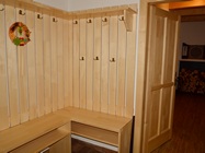 V lyžárně je držák na lyže i snowboardy, elektrický sušák na 8 párů bot, lavice s regálem, místo pro kočárky.